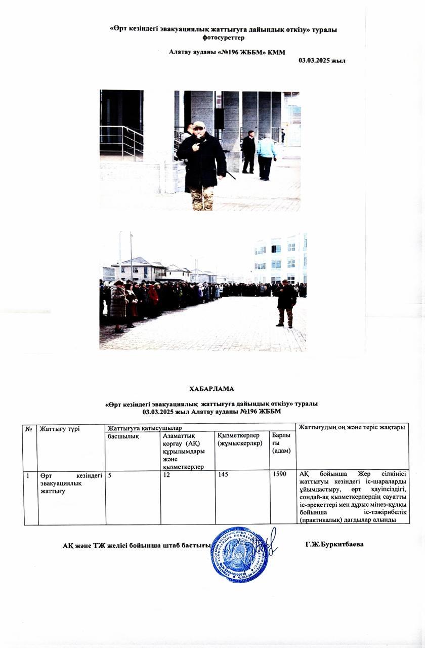 » «Өрт кезіндегі эвакуациялық жаттығуға дайындық өткізу»