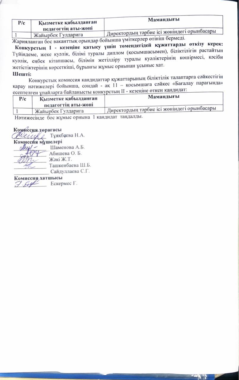 Бос және уақытша бос лауазымға педагогтерді қабылдау. Хаттама 11