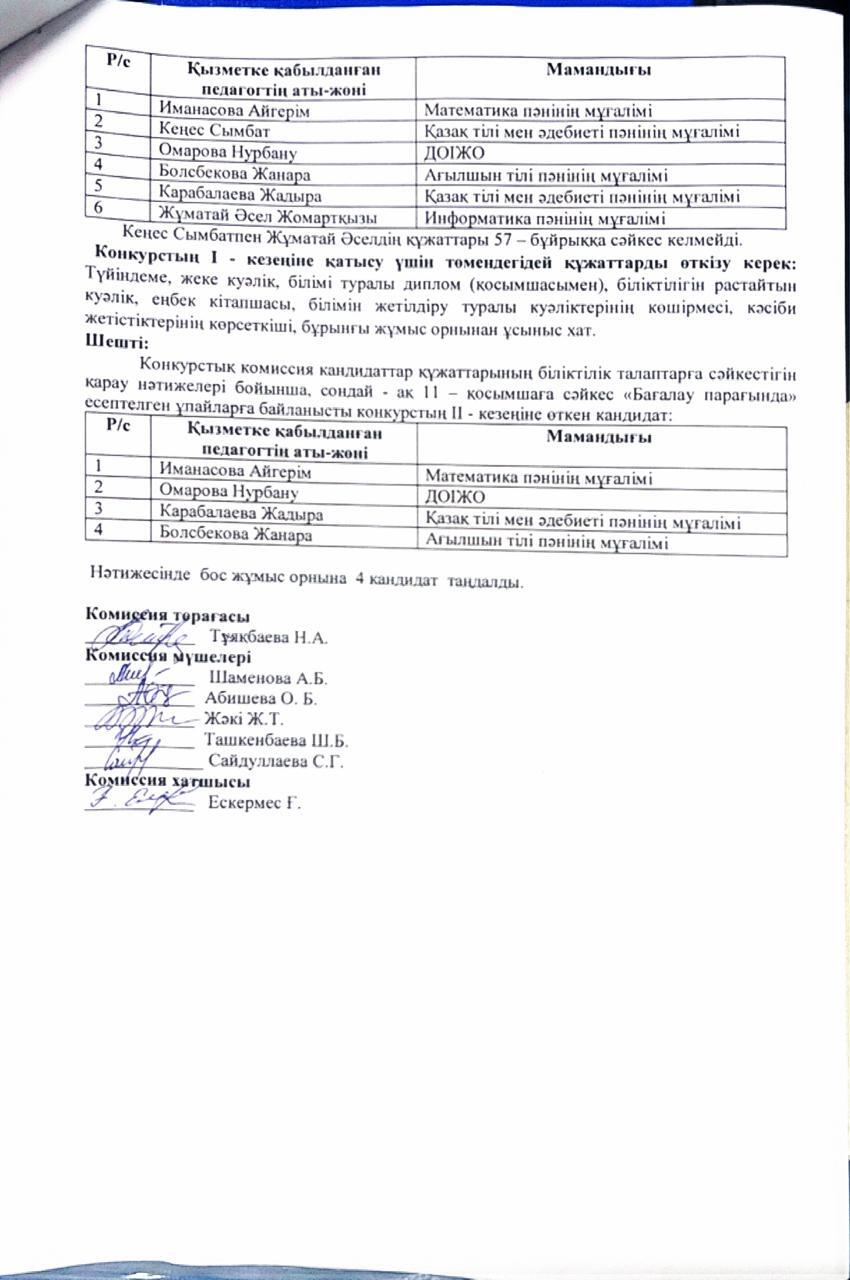 Бос және уақытша бос лауазымға педагогтерді қабылдау. Хаттама № 15