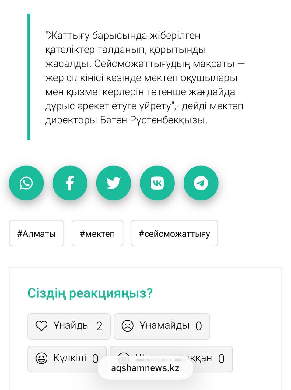 » Алатау ауданы №196 ЖББМ сейсмикалық жаттығу