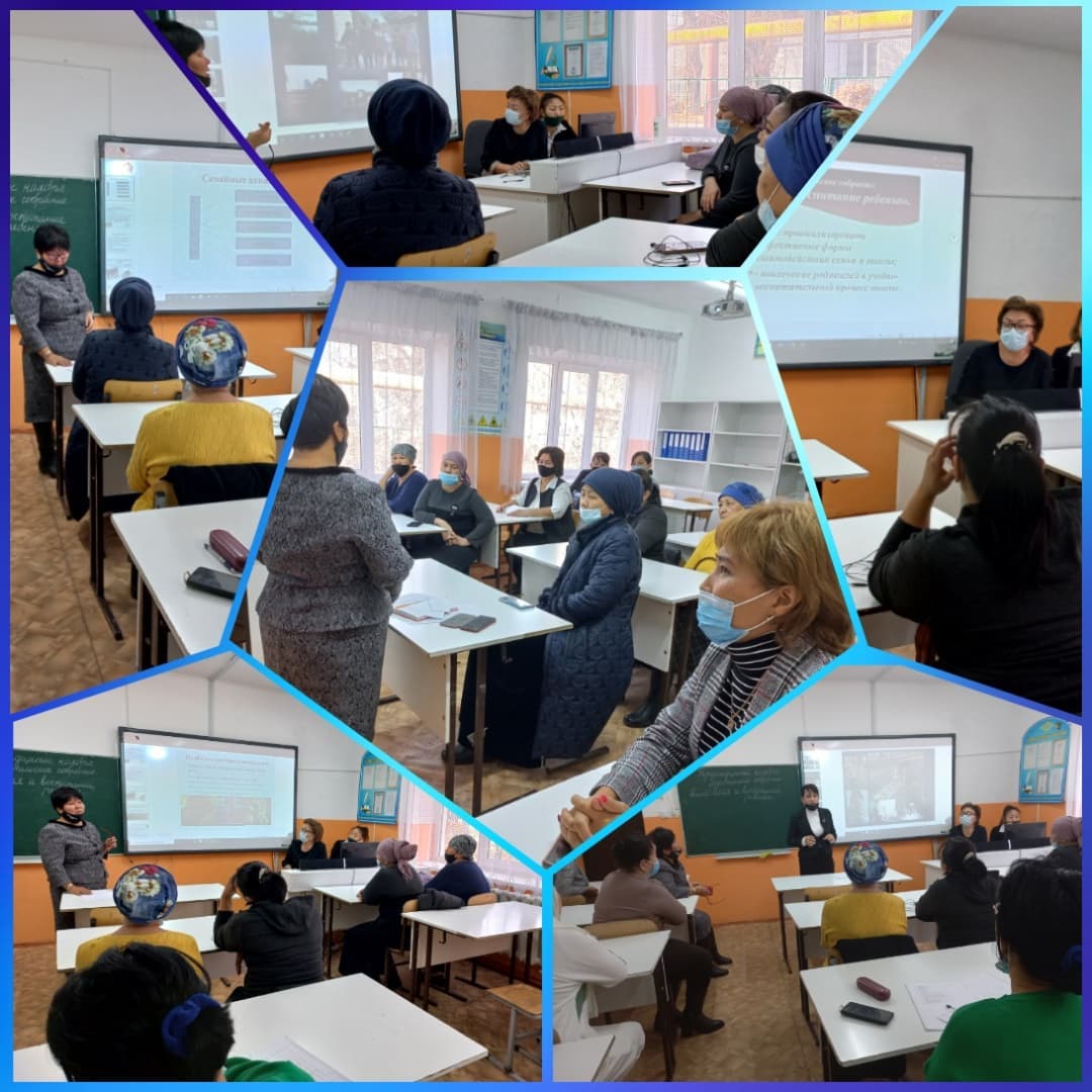 13.11.2021 г. в рамках программы по конвенции прав ребенка " Жестокость и насилие-дети без насилия" в КГУ "ОШ 196" прошло родительское собрание на тему "Семья и воспитание ребёнка" в 8б и 8в классе. На собрание присутствовали 20 родителей и администрация школы. Цель собрания: проанализировать эффективные формы взаимодействия семьи и школы. Вовлечение родителей в учебно - воспитательный процесс школы. "Воспитание - великое дело. Им решается участь человека". (В.Белинский). Эта цитата является девизом данного собрания. Ответственные классные руководители: Ж.Б. Амангельдинова, А.С. Телеуханова. На собрание Амангельдинова Жанат Бакиджановна рассказала о роли семьи в воспитании ребёнка. Сделаны были слайды и показан видеоролик.