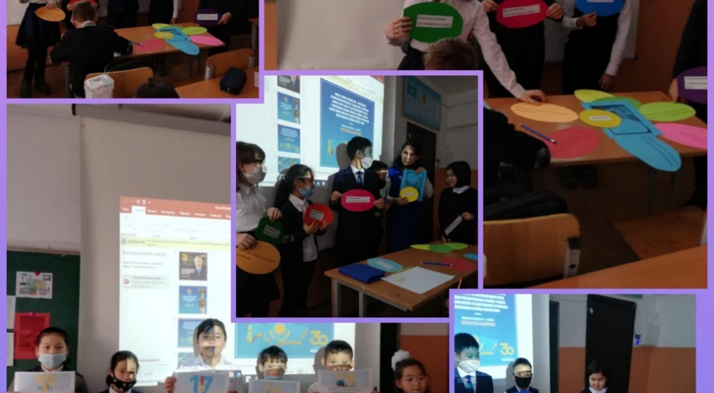 14.12.2021г. В 1 Д, 4А, 6в классах были проведены классные часы в рамках «30 летие Независимости Республики Казахстан» на тему «Под независимым стягом Казахстана».