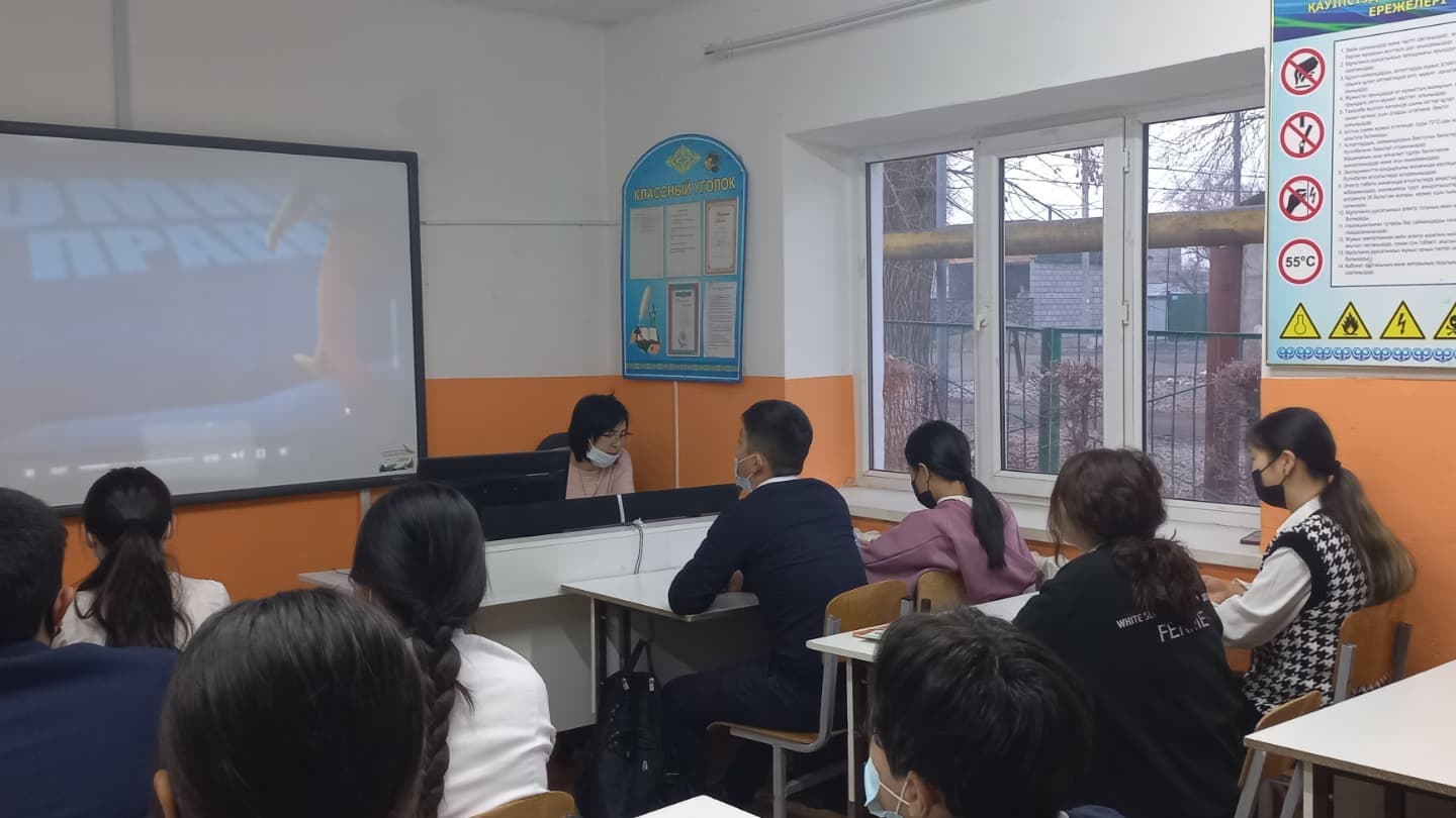 Алматы қаласы Алатау ауданы N196 жалпы білім беретін мектептің 5-9 сынып оқушылары арасында төтенше жағдайларға байланысты МҰЗДАҒЫ ҚАУІПСІЗДІК тақырыбында сынып сағаттары өтті.Мұз айдындарындағы қауіпсіздік ережелері туралы мағұлмат беру, есту, көру арқылы өз бетінше логикалық ойлау қабілетін арттыру мақсатында өткен сынып сағатында