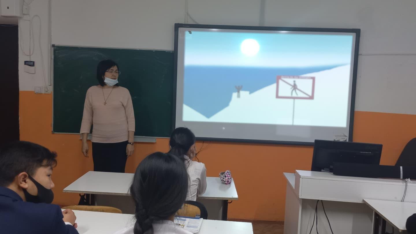 оқушыларға мұз қауіпсіздігін есте сақтауға, берілген ескертулермен, ережелер белгілерімен таныстыру, нұсқауларды дұрыс орындауға тәрбиелеу,өзара ой бөлісу, ойлау, қорытындылау қасиеттерін дамыту және өз денсаулығының бағалы байлық екендігіне көз жеткізуге жағдай жасау. Мұз үстіндегі қауіпсіздік шаралары мен өзін-өзі құтқару туралы түсініктерін арттыру болды.Әрбір адам төтенше жағдайға тап болуы мүмкін, мұз үстінде балық аулау, мұзды аймақта жарақат алу, адам өлімі, мұз астына түсіп кету , далада қалып қою, т.б. Мұзда қалу жағдайында әр адам өзін құтқаруға дайын болуы тиіс, құтқару ережелерін, аман қалу жолдарырын, өзін-өзі құтқару амалдарын дұрыс ұйымдастыра білуі қажет екені оқушыларға түсіндірілді.
