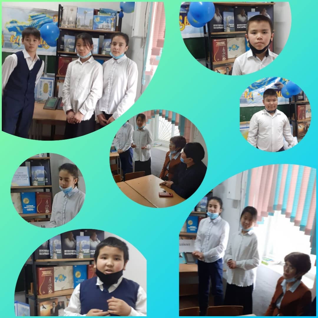 ұйымдастырылды.Еліміздің Тұңғыш Президенті Нұрсұлтан Назарбаевтың еңбектері мен өмір жолымен танысу, еліміздің өсіп, өркендеп дамуына атқарған орасан зор еңбектерін танып білу, іскерлік қабілетін, ел үшін жасаған қызметтерін насихаттау және оқырмандарға Президенттің халық үшін жасаған еңбектерін үлгі – өнеге ету, оқушыларды өз Отанын, халқын сүйетін білімді, тәрбиелі, парасатты азамат болуға тәрбиелеу мақсатында өткен көрмеге