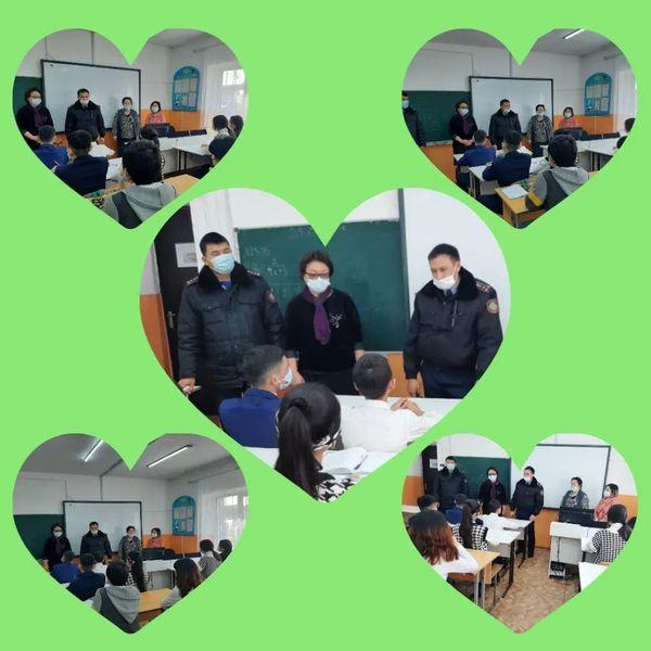 оқушыларға кешкі уақытта көшеде ата -ананың бақылауынсыз жүруге болмайтынын, жасөспірімдердің құқық бұзушылық әрекеті заң аясында қаралатыны туралы түсіндірді. Сонымен қатар, оқушыларға көшеде кез келген оқыс жағдайлардан сақтанып жүруді, құқық бұзушылық іс-әрекеттерге бармау керек екенін айтты.