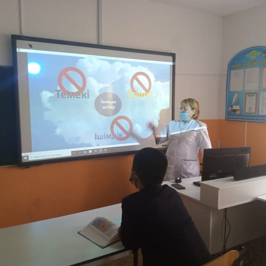 Салауатты өмір салтын қалыптастыру тәрбие жұмысының басым бағыттарының бірі. Осыған орай, 2021 жылдың 20 қазан күні оқушылардың салауатты өмір салтын қалыптастыру мақсатында 9 сынып оқушыларымен мектеп медбике Г.Н.Аширова, педагог-психолог С.Ж.Орманова әңгіме-кеңес ұйымдастырды.