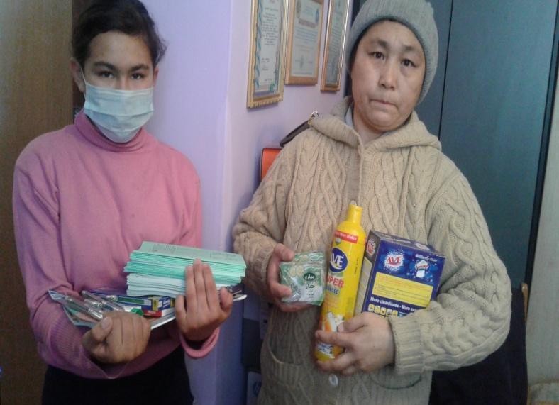 Акция барысында аз қамтылған отбасы балаларына көмек көрсетуге ата-аналарға үндеу жарияланды. Осы үндеу барысында ата-ана Маллерова аз қамтылған отбасы балаларына 24000 теңгеге киімдер алып берді. Ата-ана Ким Эдита оқу құрал – жабдықтарын 10 оқушыға 10000 теңгеге алып берді.