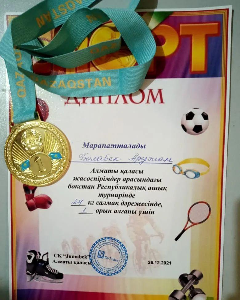 Республикалық ашық турнирде 1 орын алғаны үшін марапатталды.