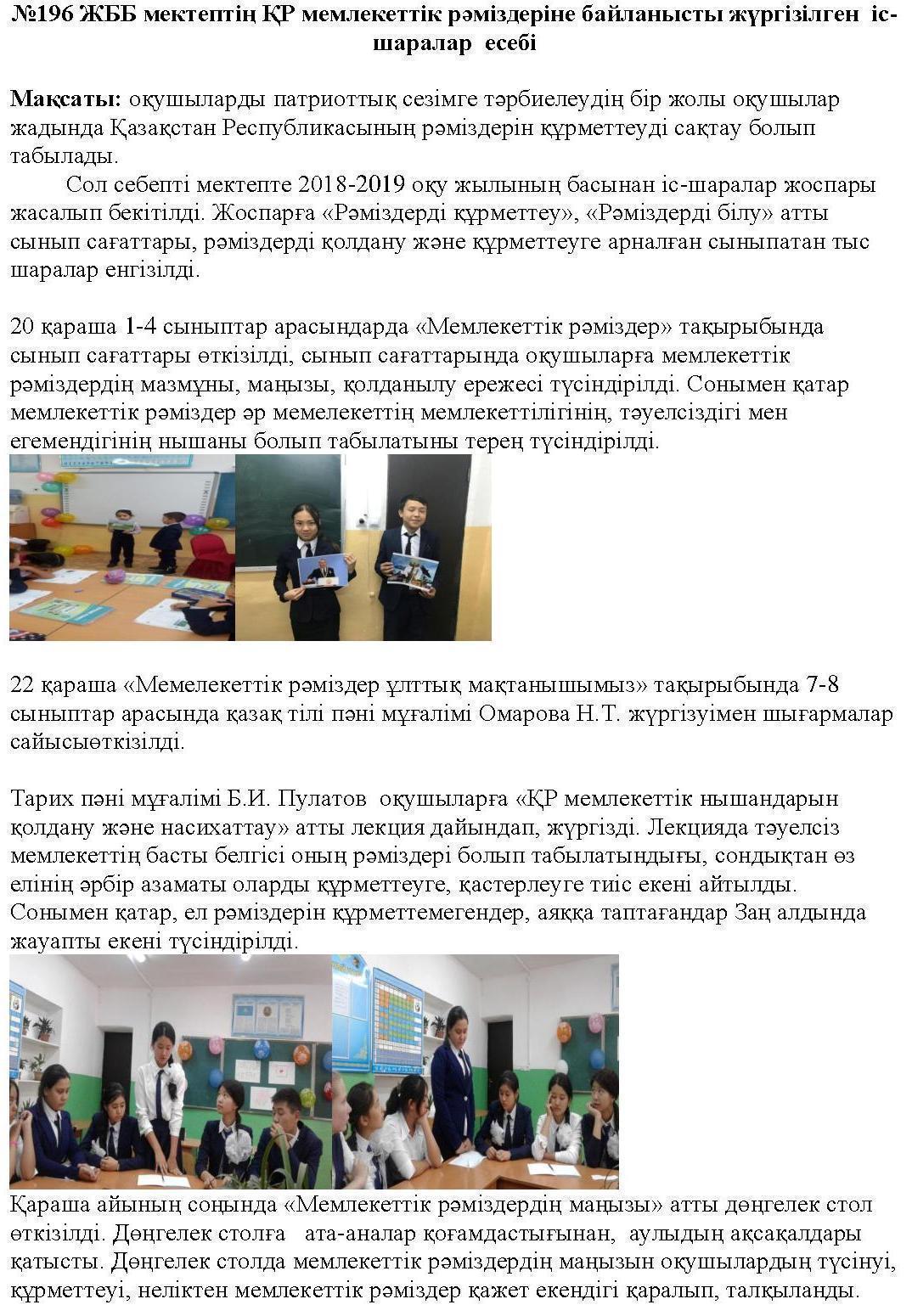 ҚР мемлекеттік рәміздеріне байланысты жүргізілген іс-шаралар есебі