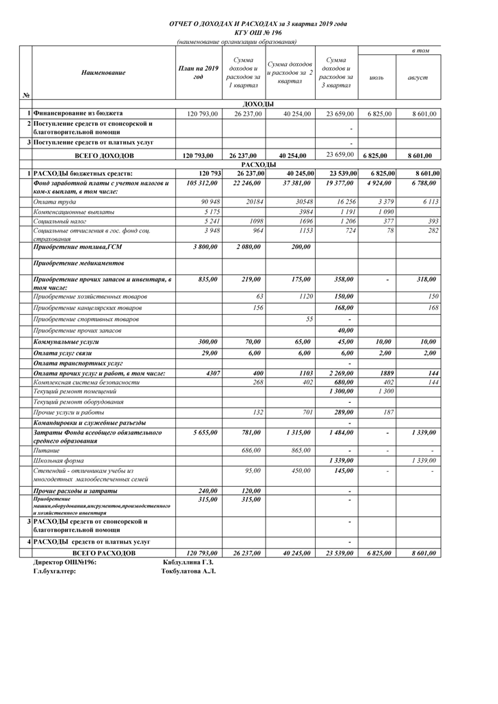 » ОТЧЕТ О ДОХОДАХ И РАСХОДАХ за 3 квартал 2019 года