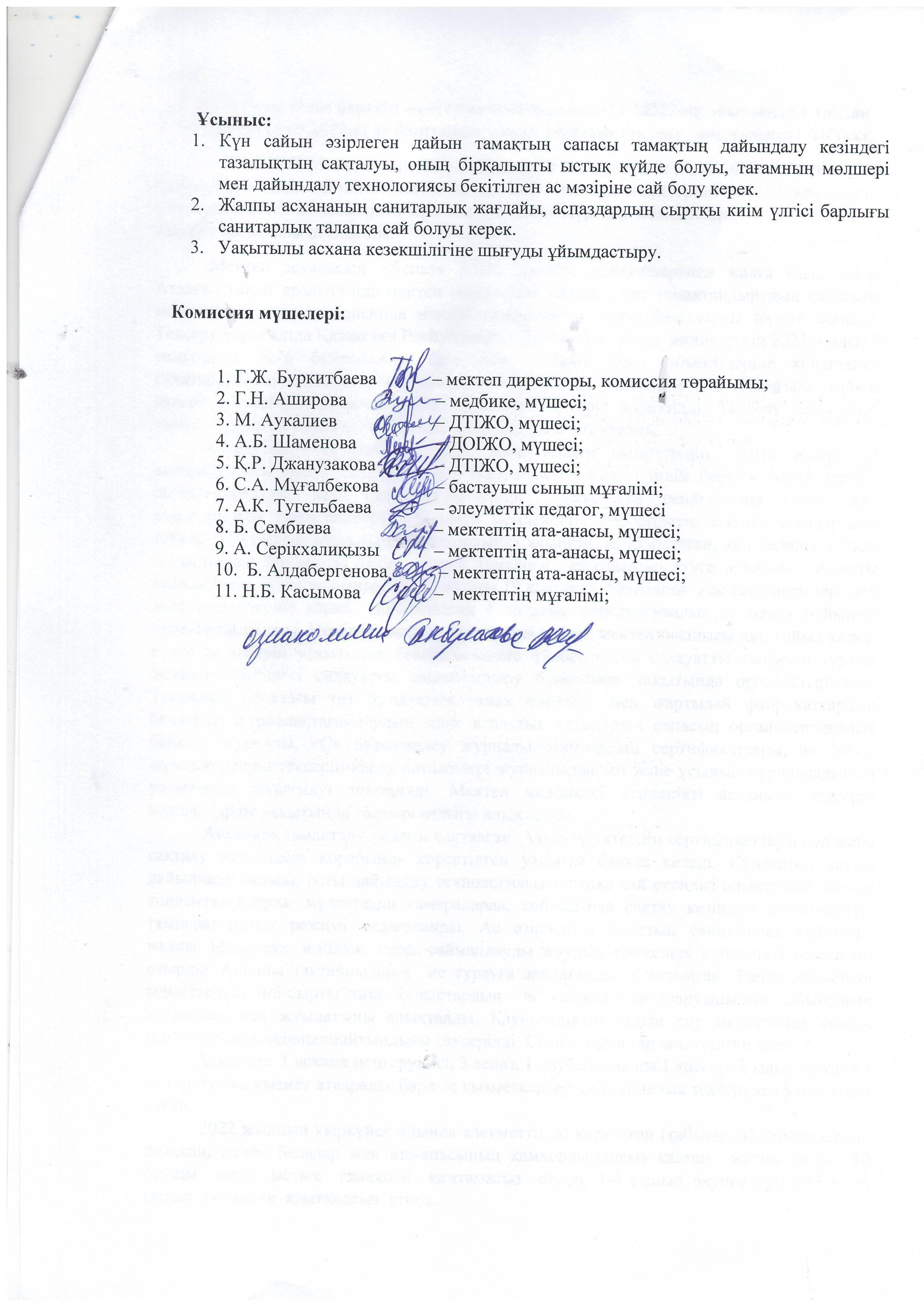 №196 мектеп » Тамақтандыру » №2 АКТ.№ 196 жалпы білім беретін мектеп асханасының 2022-20223оқу жылында 1 тоқсан бойынша (15.09.2022ж) ас блогының тамақ сапасын тексеру мониторингі АКТсы