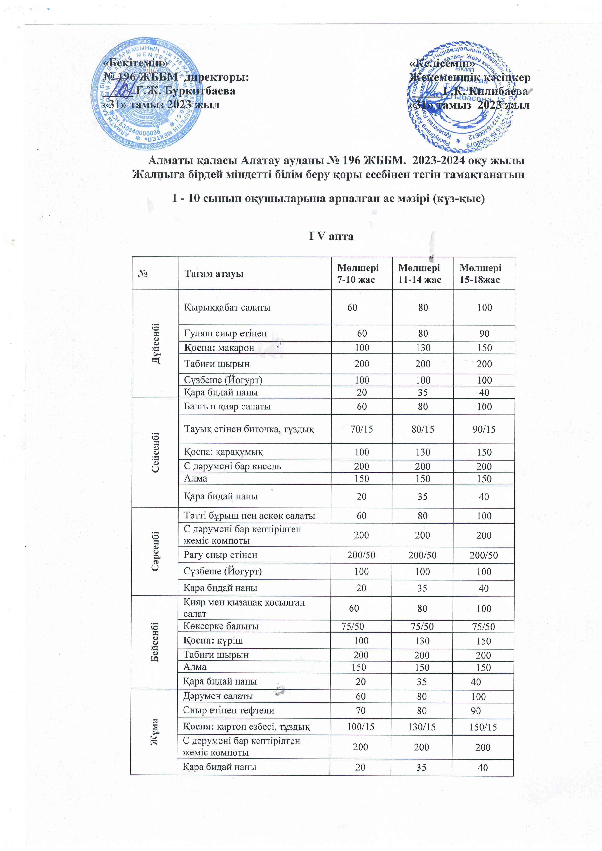 25 сентябрь 2023 0 1 2 3 4 5 Қырыққабат салаты, Гуляш сиыр етінен. Қоспа:макарон.Табиғи шырын. Сүзбеше (Йогурт) қара бидай наны