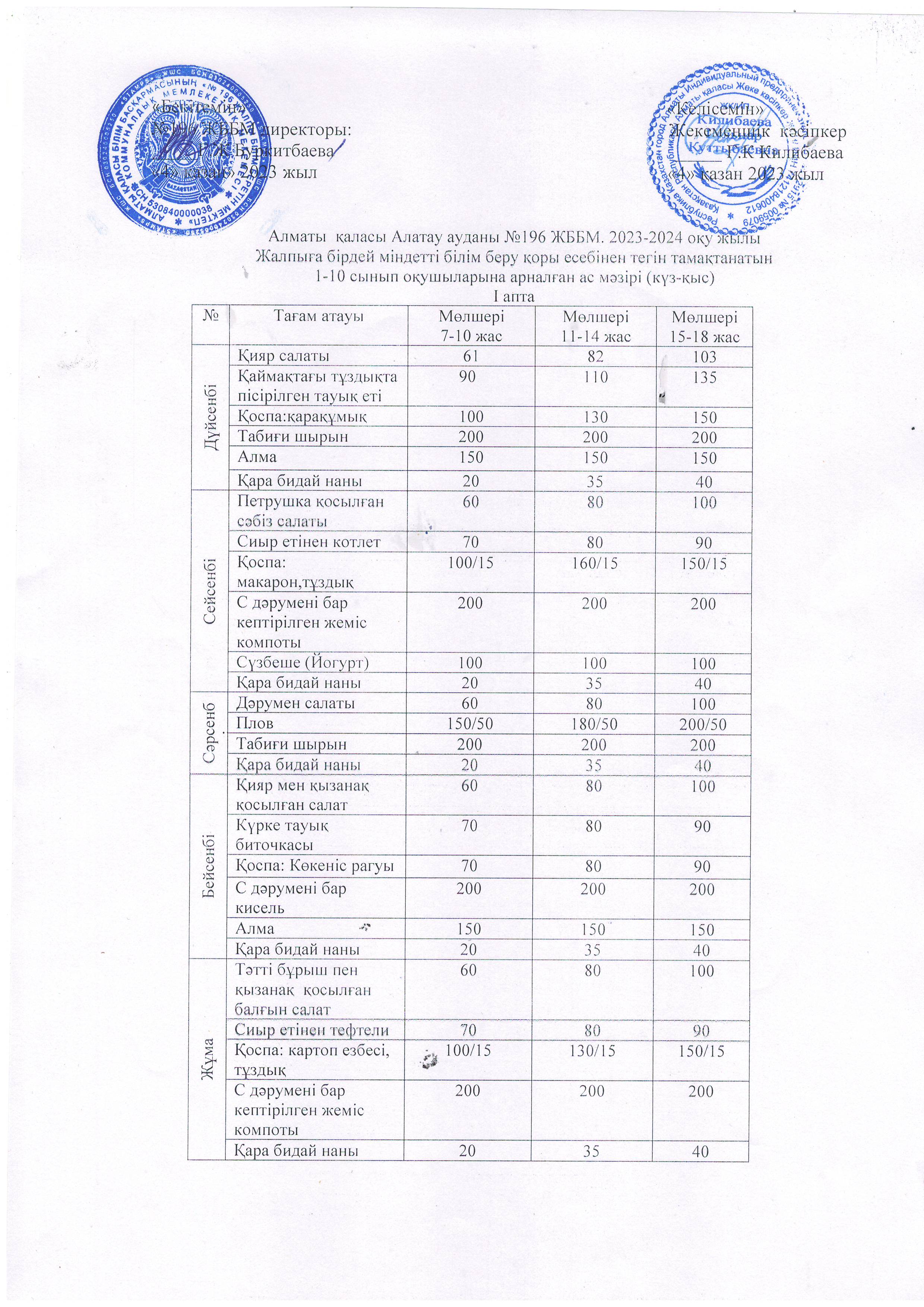 06 ноябрь 2023 0 1 2 3 4 5 Қияр салаты.Қаймақтағы тұздықта пісірілген тауық еті. Қоспа: қарақұмық. Табиғи шырын. Алма. Қара бидай наны.