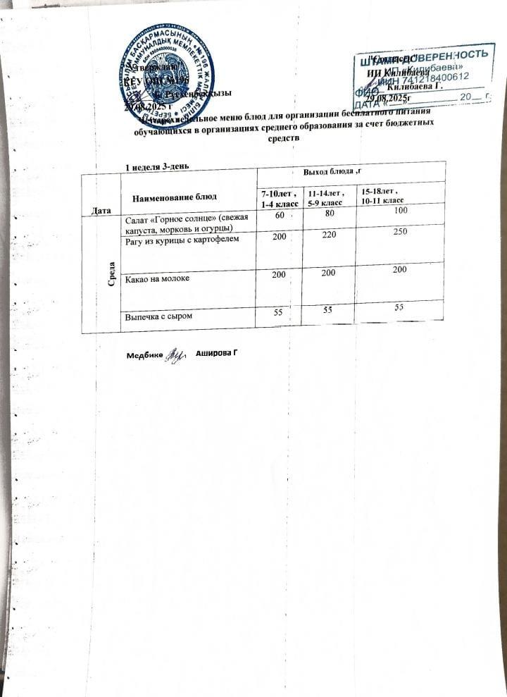 Ас мәзірі ІII апта 3 күн - 14.05.2025ж