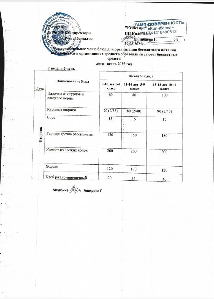 Ас мәзірі 25.09.2025