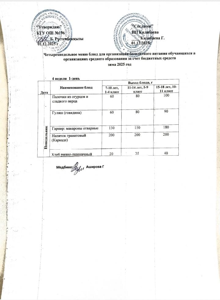 Ас мәзірі І апта 2 күн - 29.04.2025ж