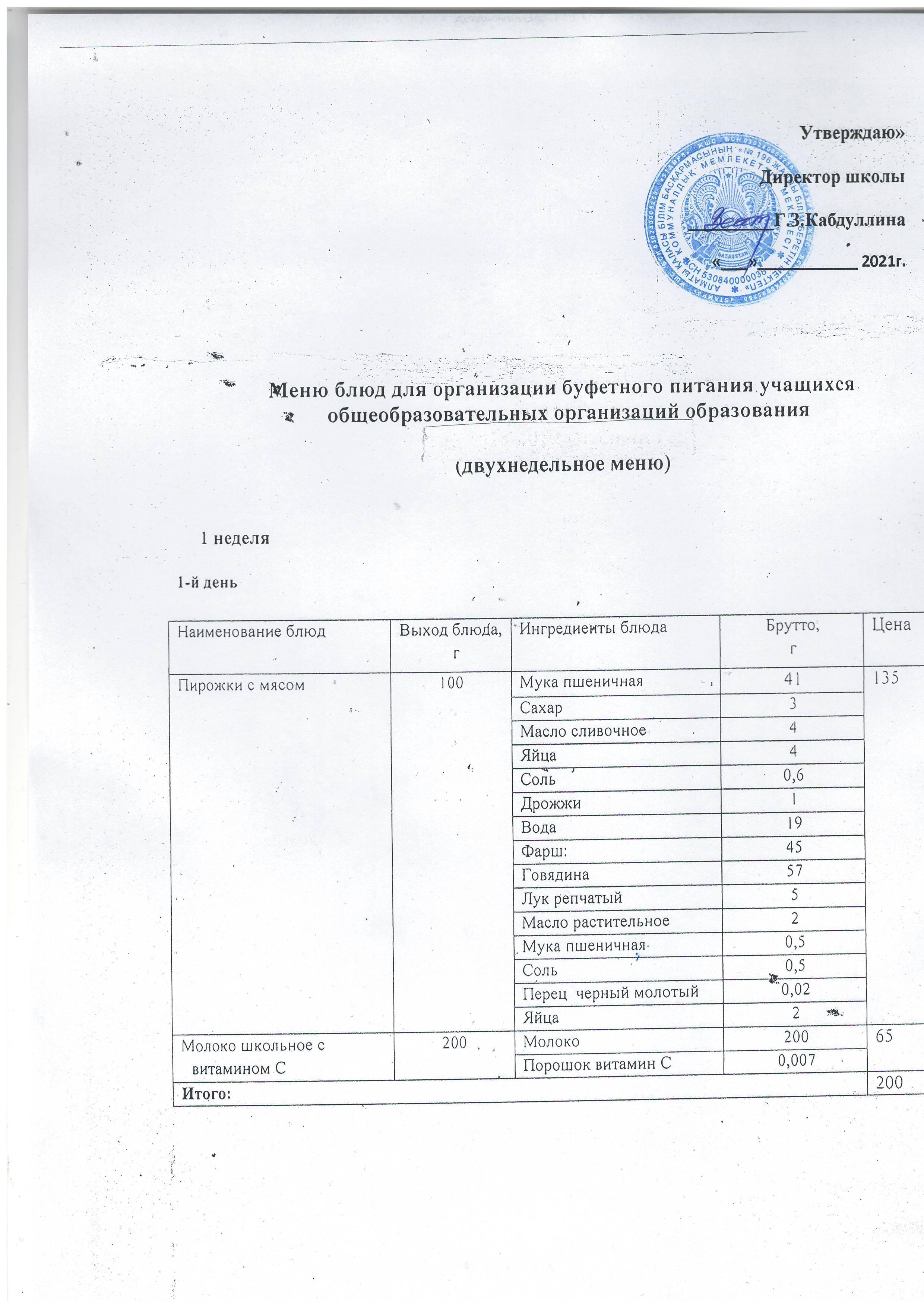 Меню на 2021 год