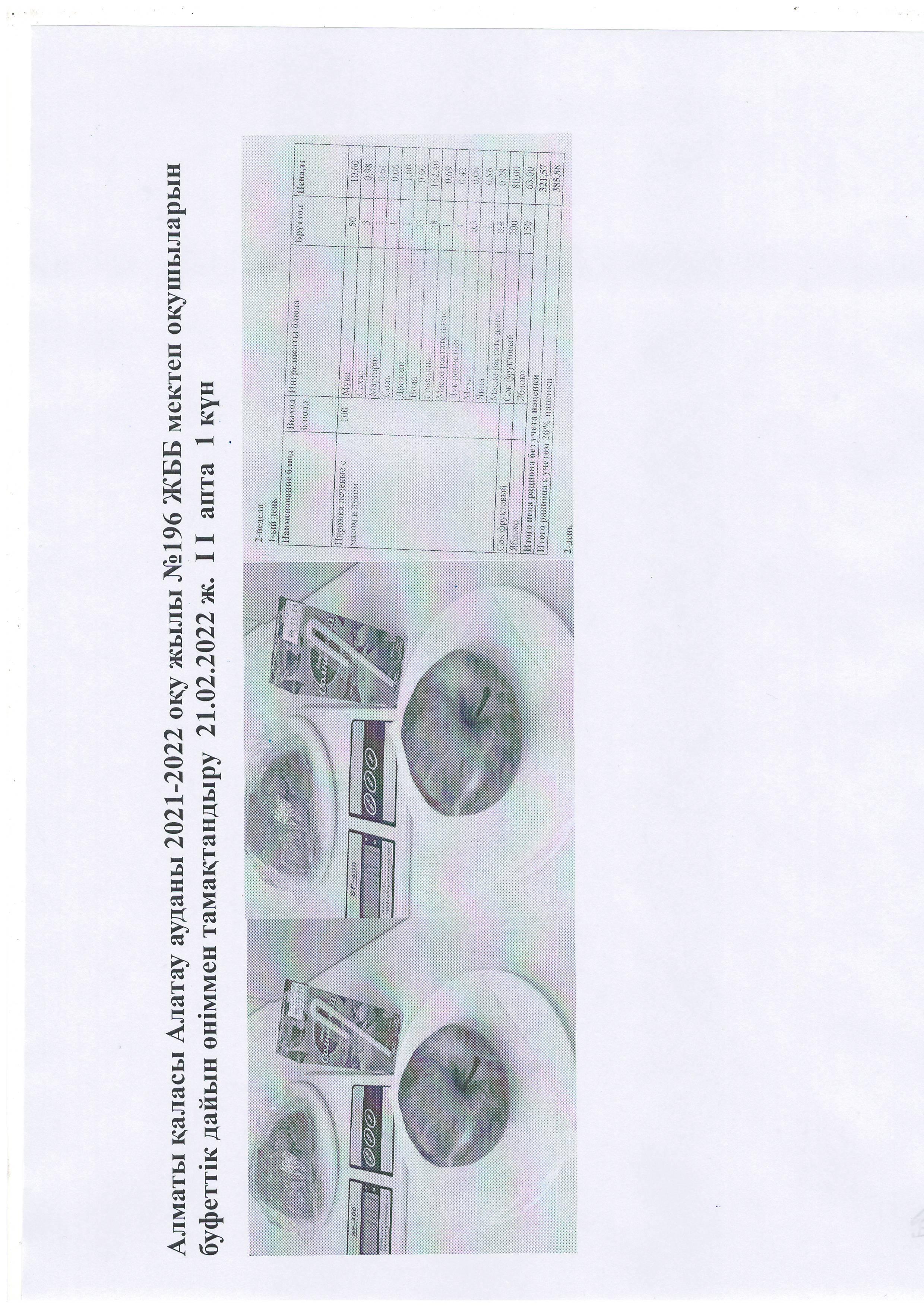 №196 мектеп » Тамақтандыру » Алматы қаласы Алатау ауданы 2021-2022 оқу жылы №196 ЖББ мектеп оқушыларын буфеттік дайын өніммен тамақтандыру 21.02.2022 ж. І І апта 1 күн