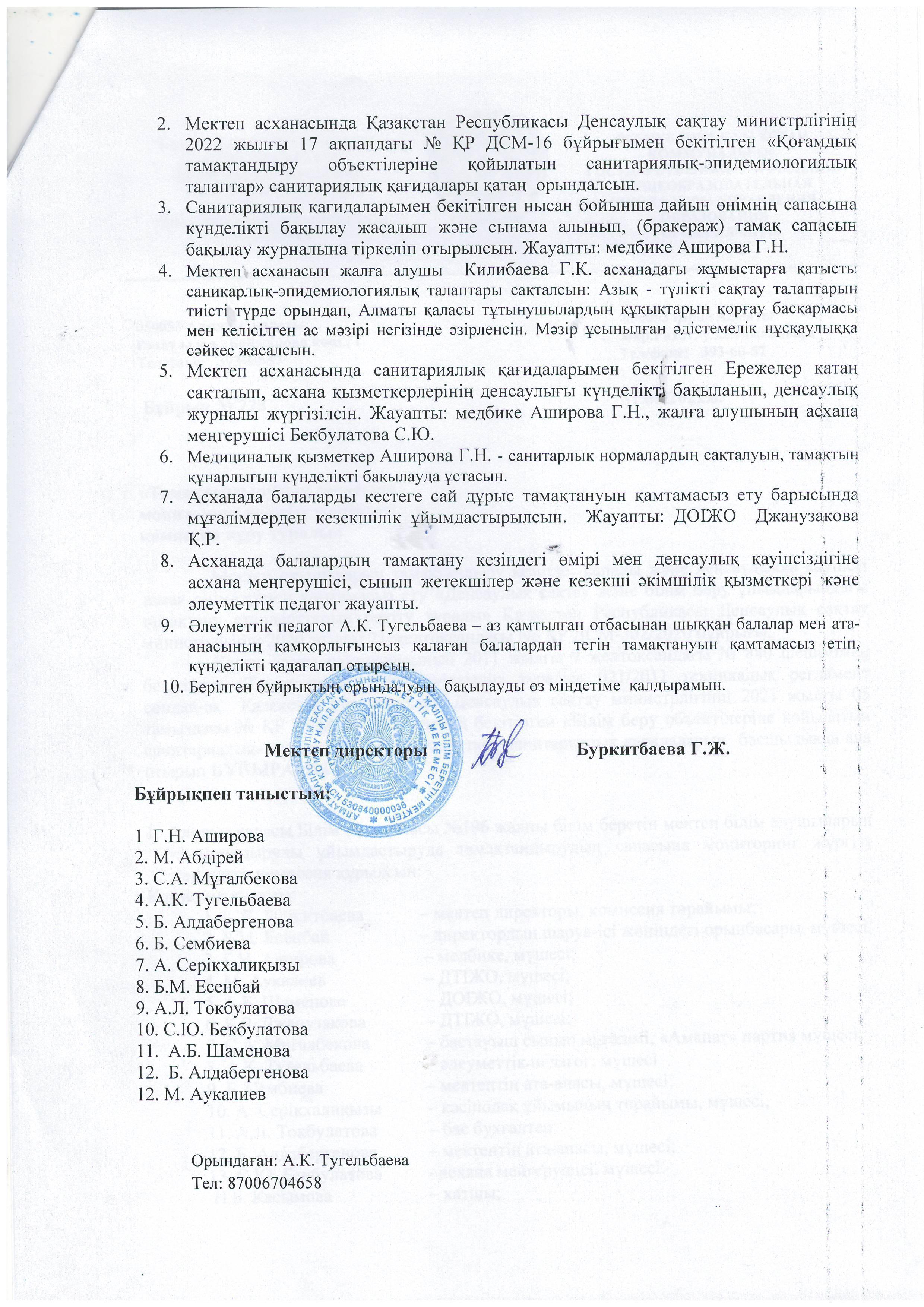 31 август 2022 0 1 2 3 4 5 «Тамақтандырудың сапасына мониторинг жүргізу жөніндегі комиссия құру туралы»